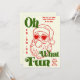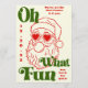 Festive bubblegum blowing Santa, with his heart shaped glasses, is the star of this merry Oh What Fun holiday party invitation.