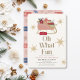 This cute "oh what fun" girl's 1st/first birthday invitation features a cream background with a pink sleigh with gifts/presents and flowers. The reverse side features a pink background with Christmas holiday motifs. Personalise it for your needs. You can find matching products at my store.
