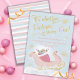 Soft and pretty Santa's Christmas Sleigh Birthday party invitations. Features a pink and faux gold sleigh with a big bag of holiday gifts and candy in the winter snow. Faux gold snowflakes against a soft blue sky. The words "Oh what fun" and "is turning" can not be changed but can be deleted. Great for a little girl turning one or any age around Christmas time.