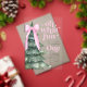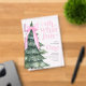 Oh What Fun it is to be one 1st birthday invitation with Christmas tree and pink bow.