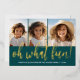 FRONT - The gold foil greeting - oh what fun! - is on top of 3 photos. The family greeting is on the bottom.