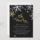 Festive but formal Christmas party or New Year's Eve party invitation design features sparkling silver and gold snowflakes and "Oh, What Fun" in script, and wording that can be personalized for your special event. Snowflake border and script have a textured glitter looking appearance on a black background.