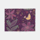 Pretty, artistic, whimsical, fun, and cheery best describes this flowers and yellow bird fleece blanket. The background is a deep purple with both big and small flowers of peach, pink, blue, and green with a yellow/peach bird singing away!