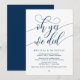 Celebrate your intimate wedding with this stunning "Oh Yes We Did" elopement announcement card featuring elegant modern calligraphy and minimalist design. This sophisticated navy blue and white card is perfect for sharing your special news with family and friends after your elopement ceremony.