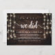 oh yes, we did, Wedding Elopement Announcement / Invitation card, in Rustic farm Wood, String Lights design. This is perfect for your wedding reception and post-wedding celebration party. Add your details in matching font / lettering.