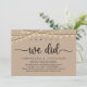 Oh Yes, We Did, Rustic Wedding Dinner Elopement Invitation