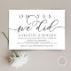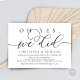 Modern romantic minimalist Simple Calligraphy Script, Wedding Elopement Party invitation card (oh yes, we did). It is perfect for your wedding elopement announcement and party celebration, after your best day. Add your details in matching black font / lettering.