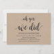 oh yes, we did, wedding elopement reception invitation card. This rustic kraft wedding elopement themed invitation card is perfect for your wedding reception and post-wedding celebration party. Add your details in matching black font / lettering.