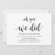 oh yes, we did, wedding elopement reception invitation card. This rustic kraft wedding elopement themed invitation card is perfect for your wedding reception and post-wedding celebration party. Add your details in matching black font / lettering.