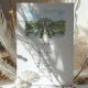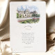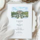 The coordinating back continues the story with a closer courtyard view of the castle: arched windows, climbing greenery, manicured scroll hedges, and a blooming planter tree create an intimate garden atmosphere for your “Finer Details” text. Use this side to share directions, schedule notes, accommodation information, or your wedding website. All wording is fully customizable, making this suite perfect for Oheka Castle celebrations, estate weddings, or any couple who loves sophisticated architectural watercolor art.