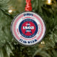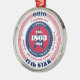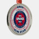 Show your state pride this holiday season with this unique Christmas ornament dedicated to Ohio, the 17th state. It has red, white, and blue patriotic colours with a circular typography design on a white background. The text includes facts about the state, such as its name, capital, state abbreviation, region, time zone, geographic coordinates, the year of its statehood, and its resident's name. It's a great gift for those who wish to celebrate their state or for those who are feeling nostalgic about their home state.