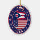Badge of Ohio with flag of Ohio and flag of USA colors, rounded shape.