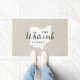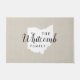 Modern farmhouse personalised doormat with your family name inside your state map. Faux burlap canvas texture background. Click Customise It to add your own text and images and create a unique one of a kind design!