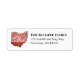 A map of the state of Ohio features faux lace, fabric, and stitching with a matted art look. This neutral red Ohio return address label works well for holiday correspondence, but it is also neutral enough to decorate your mail throughout the year!