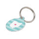 Let your furry friend show some home state pride with this cute Ohio pet ID tag. Design features a white silhouette map of the state of Ohio with a pink heart inside, on a tone on tone turquoise stripe background. Add your pet's name and contact information to the back in white lettering on an aqua background.