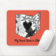 Red-Orange mouse pad with Ohio Plants illustration featuring: Trillium, Tulip Poplar, Buckeyes, and Paw Paw plants.