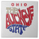 Fun and colourful typographic design with a retro feel features the state of Ohio's nickname: The Buckeye State displayed within a state shaped silhouette