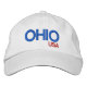 The Ohio is in the state colours of Ohio: red, white, and blue. The hat can be customised: colours, style, sizes, and wording.
