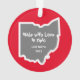 The state outline of Ohio, a background of buckeye leaves, a cardinal (our state bird), and buckeye nuts themselves all adorn this spirited Ohio Christmas ornament. Leave the "Made with Love in Ohio" message on the back or include a quick note of your own. Include your last name and the year, and you have a keepsake your recipient will adore for years to come!