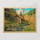Vintage Ohio Save The Date postcard in fun retro mid-century style. It features a rustic woody nature landscape with a wood cabin and water wheel mill, and a pretty creek stream with fall leaves for an autumn or end of summer feel. This Ohio Save The Date postcard will be perfect for a country wedding or nature and camping wedding.