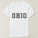 Plain white t-shirt with "Ohio" in old school athletic looking letters.