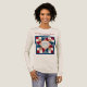This quilted design features the Ohio Star quilt pattern square in navy blue, red, tan, and ivory with a customisable wording that says, "To quilt or not to quilt? That is a stupid question" on it in red and navy, with the words, "Ohio Star" in the centre block on an ivory square in navy. All of the quilt "pieces" have assorted floral and other patterns on them to create simulated fabric pieces. If you are an avid quilter or paint barn quilts, you're sure to love this shirt. Gift it to a quilter in your life and they are sure to be pleased!