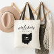 Welcome guests to your Ohio wedding with these chic and modern personalised tote bags. Design features "welcome" in modern handwritten calligraphy script, with your initials joined by a heart, along with your wedding date, inside a black silhouette map of the state of Ohio. Personalise with a specific Ohio city or location name if desired.