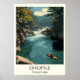 Experience the thrilling beauty of Ohiopyle, Pennsylvania with this captivating vintage travel poster. Featuring a tranquil river winding through dramatic gorges and lush forests, it evokes the adventurous spirit of the Laurel Highlands. Perfect for whitewater rafting enthusiasts, nature lovers, or a stunning piece of outdoor adventure art.