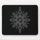 An Ohm symbol inside of a stylised star design. Swirls and dots come together to form this intricate pattern.