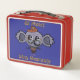 This is a standard metal lunchbox that appears to work just fine. We designed this box ourselves with an uploaded photo and custom text on the front and back. It looks absolutely beautiful except the front of the lunchbox is not centered like it shows in the photo. The print borders don't align with the inset flat part of the box where the preview photo online showed it perfectly centered in there. The back looks nice and centered though.
