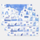 Oia Santorini Greece Watercolor Townscape Painting Wrapping Paper Sheet