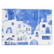 Blue and white contemporary townscape watercolor painting of the village of Oia in the Greek island of Santorini. Original art by Nic Squirrell.