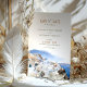 Get your guests excited with this beautiful Save the Date card featuring a watercolor artwork of the white architecture of Oia village on Santorini island, Greece. Oia is a picturesque village renowned for its stunning views of the Aegean Sea, colorful sunsets, and romantic atmosphere. Your guests will love receiving this elegant invitation that transports them to the heart of Santorini, one of the most sought-after wedding destinations in the world.
