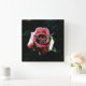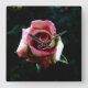 Oil painted red rose square wall clock