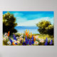 oil painting flowers near the sea, camomile field, poster