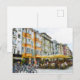 Oil painting of Innsbruck cityscape in Tirol Austria. People sitting in restaurants. Bikes in front.