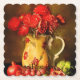 Oil Painting of Red Flowers and Fresh Fruits Paper Coaster