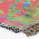 A quality printed throw has its advantages. This is a much finer weave throw than its loopier cousins, and though lighter, it is worth the investment for custom room accessorizing. The back is much prettier than the typical brown, and the fringe on the long sides very vivid, the selvage nicely done. Before photographing, I washed the throw in cold water, delicate, with a thicker woven throw the same size. On tumble dry low, this throw was dry in half the time as the other. This is a very practical quality if you use throws for furniture covers or to wrap up in frequently. The sleekness of the fabric makes it a great layer for accenting or protecting without the feeling of sitting on too much stuff. Perfect for napping or when you feel a light chill coming on. The color printing is beautiful and on this fabric, matched the design and color of my Photoshop image. This is an advantage for blending room fabrics and colors. The fringe on the short sides prints the colors from the design image and therefore varies from the side fringe. I streaked a white fractal line through the plaid pattern to give the illusion of weaving. This printed as crisp as an illusory thread, and put some white in the short side fringe, showing another advantage of print vs loomed- for artistic purposes, line lines, detail, and color integrity can be planned and preserved. My loomed throws have color limitations and more of a needlepoint texture. Print throws reproduce an exact image. The throw felt a little stiff straight out of the package, but this went away in the first delicate wash. Of course I searched the wash water for ink or bleeding and there was none.