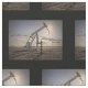 Muted colours and shadows are created with the setting sun on this oil well site.