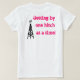Stylish white shirt that says Oilfield wife in cool pink font. Back of shirt says getting by one week at a time and has oil derrick.