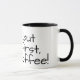 Funny saying mugs for work and home for busy working people and stay at home moms alike. OK, but first coffee mug carries the familiar and pop culture phrase in simple and casual minimalist typography style. If you need coffee first thing in the morning to wake up and start your system functions this will be a great mug for you. It also makes a fun practical gift for a true coffee lover.