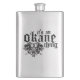 The product is a good size and came exactly as it was pictured. The lid is not attached to the flask, which could be dangerous on drunken nights... The print came out surprisingly well and looks very sharp. Would definitely recommend.