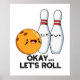 Okay Let's Roll Funny Bowling Pun features a cute bowling ball and his bowling pin sidekicks. Perfect pun gift for family and friends who love cute bowling puns.