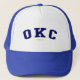 Check out this OKC hat! Are you from Oklahoma City, Oklahoma? Do you have a friend or family member who loves Oklahoma City, Oklahoma? If so, this "Banner" hat is exactly the gift that you're looking for! The design features "OKC" in arched navy lettering in the classic College font.