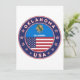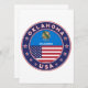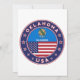 Badge of Oklahoma with flag of Oklahoma and flag of USA colours, rounded shape.