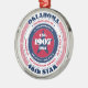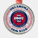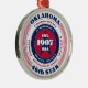 Show your state pride this holiday season with this unique Christmas ornament dedicated to Oklahoma, the 46th state. It has red, white, and blue patriotic colours with a circular typography design on a white background. The text includes facts about the state, such as its name, capital, state abbreviation, region, time zone, geographic coordinates, the year of its statehood, and its resident's name. It's a great gift for those who wish to celebrate their state or for those who are feeling nostalgic about their home state.