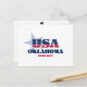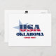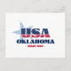 Oklahoma postcard. A creative typography design that encapsulates Oklahoma's essence with bold red, white, and blue colours, and patriotic elements, including stars and stripes.