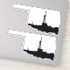 A set of 2 vinyl cutout stickers in the shape of the State of Oklahoma filled with the silhouette of an oil drilling rig.