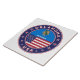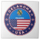 Badge of Oklahoma with flag of Oklahoma and flag of USA colours, rounded shape.