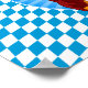 A cute dachshund dressed in a German hat sits behind a large beer mug overflowing with beer in this Oktoberfest design with blue and white colours of the Bavarian flag.
